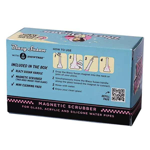 So how does it work??? There are technically 3 products in this pack; a handle, magnetic scrubber and mini cleaning pads. The magnetic scrubber with the cleaning pad attached inserts directly into your bong and the handle is used on the outside of the glass to guide the scrubber along the glass. I would use it along with isopropyl alcohol to dissolve resin. Stubborn gunk?? Just move back and forth over the same spot. Once you are finished simply guide the scrubber up and out of the neck. You can clean the scrubber pads and spares are provided in the kit.
